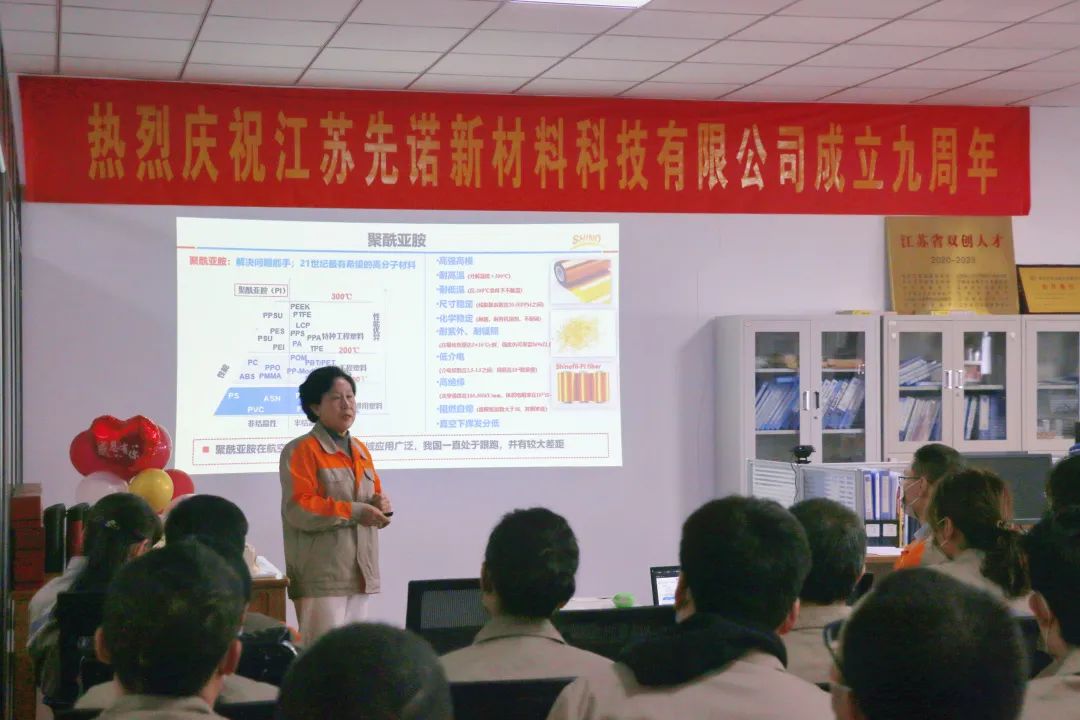今天是一個值得紀念的日子,慶典會議現(xiàn)場安排井然有序,董事長武德珍首先作會議致辭,并做了專題《先諾創(chuàng)新發(fā)展之路與未來》的報告。專題圍繞“高性能聚酰亞胺纖維與先諾公司”、“公司創(chuàng)新發(fā)展歷程與體會”、“公司未來發(fā)展規(guī)劃與思考”等方面介紹,進一步加深員工對公司發(fā)展歷程、產(chǎn)品及公司文化的認識。